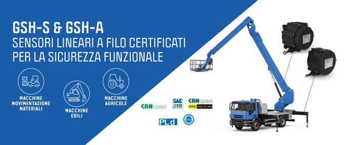 La certificazione SIL2 / PLd è ora estesa all’intera famiglia di sensori a filo GSH, comprendendo sia le versioni GSH-S (misura della posizione lineare) sia GSH-A (misura combinata di posizione lineare e angolare), per tutte le corse disponibili: 1.800-8.300 mm e 10.000-12.500 mm, per un’ampia gamma di applicazioni su macchine mobili.