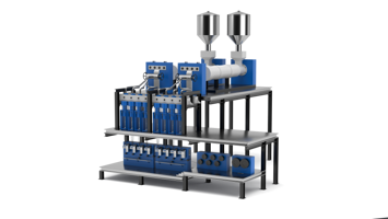 Nel processo di melt spinning, il polimero (tipicamente PET, Nylon o Polipropilene) viene dosato e miscelato, alimentando l’estrusore all’interno del quale avviene la fusione ed omogenizzazione del materiale plastico. Una pompa di dosaggio garantisce una portata costante del fuso verso il sistema di filtrazione, eliminando impurità che potrebbero compromettere l’integrità dei filamenti.